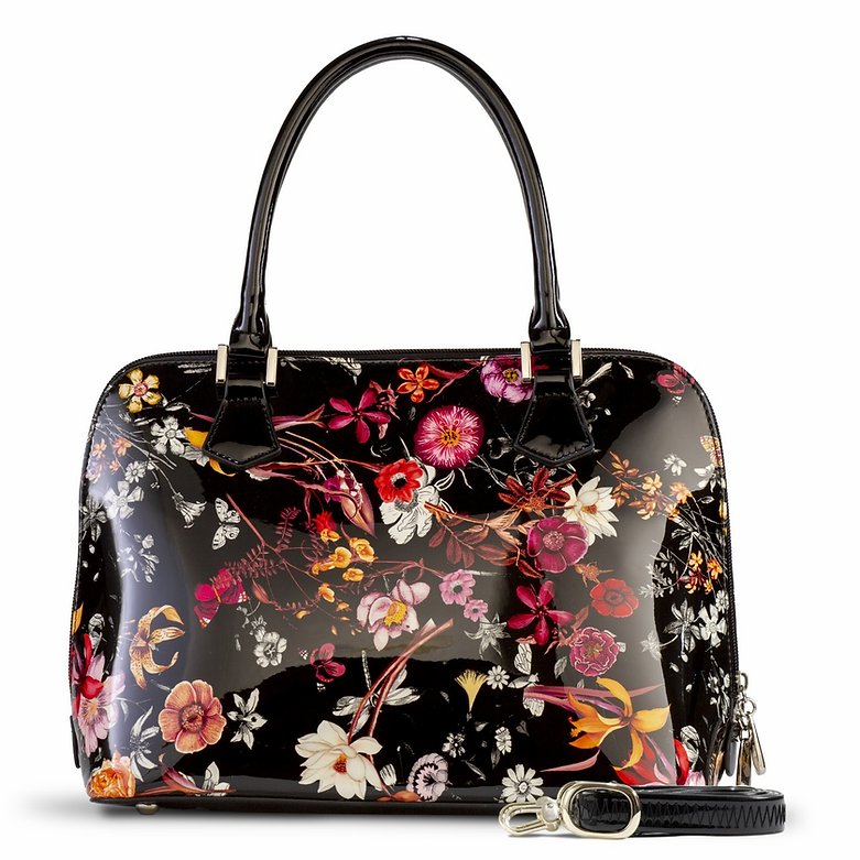 Anuta Medium Night Blossom Black Flower Print Leather Handbag BH93-2012